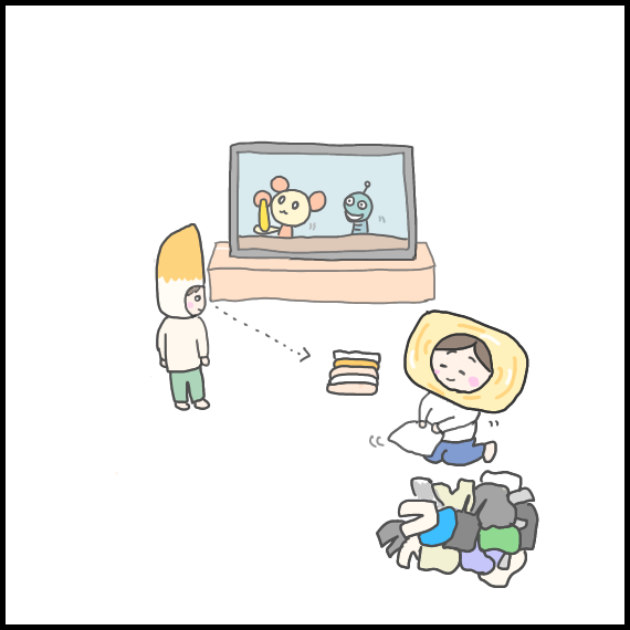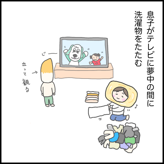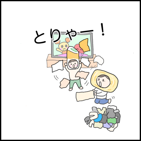 息子の目をぬすんで洗濯物はたたんでいますが、まんまと見つかって毎度この様です😭。。たたんだらソッコーしまいにいかないといけないんですよね。。。置いておくとアウト!