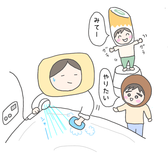 やりたいって言われると、いつも悩みます。お手伝いの意慾を潰してはいけないとは思うが、めっちゃ時間がかかるし、、😩